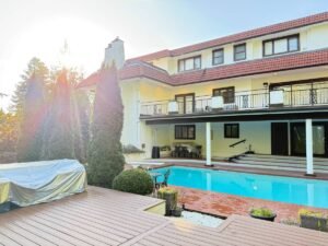 The basement boasts a second kitchen area and bar for entertaining, pool table, theatre area with projector, wine cellar, 5th bedroom with ensuite, sauna, with pool and garage access.